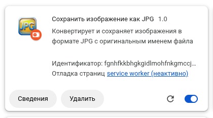 После этого расширение Сохранить изображение как JPG 1.0 появится в списке