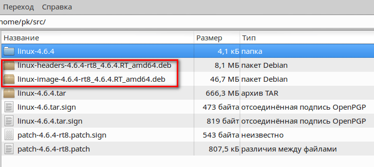 Создадим в домашней директории папку src и скопируем в нее ранее скачанные три файла — linux-4.6.4.tar.xz, linux-4.6.4.tar.sign и patch-4.6.4-rt8.patch.xz.