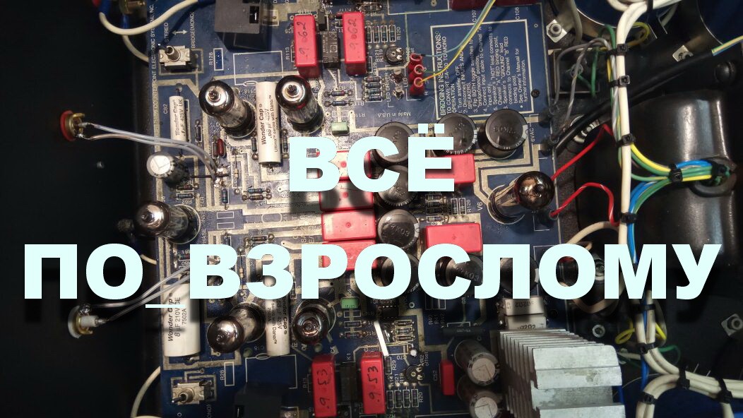 Оказалось примерно так же как и здесь. Корректор Стародубцева вряд ли уступил по общему уровню «американцу». Какие то мелкие нюансы конечно присутствовали, но кому и, главное, в плюс или минус их отнести, я сказать сразу вот так затрудняюсь. Ладно, первое впечатление на то и первое. К тому же часто это самое впечатление бывает обманчивым. Поэтому к данному вопросу я ещё вернусь. А теперь включаем мощник. Включили и …сразу ТАКОЙ конфуз. Мой сетевой фильтр явно не был рассчитан на такое энергопотребление. А оно у данного аппарата 1квт (!). В итоге предохранитель приказал долго жить. Ладно, второй раз рисковать не будем — включаем аппарат напрямую в розетку. И вот уже первая особенность: при включении надо ждать две минуты (именно столько прогреваются лампы входного каскада) пока индикаторный светодиод поменяет своё красное свечение на зелёное. Да, цикл у этого «светофора» немаленький. На дороге бы точно пробка образовалась. Но нам спешить по — счастью некуда. Ждём — с. Ну вот и зелёный. Поехали.