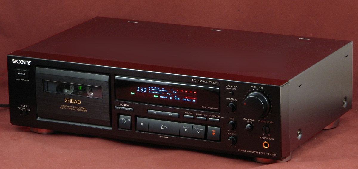 Кассетная дека от Sony. Головки пермалоевые. Пишет хорошо. Есть подстройка Bias, шумоподавители Долби, которые все равно ощутимо влияют на звук и врятли вы станете ими пользоваться. При перезаписи на эту деку с бюджетного СД-проигрывателя на TDA1541 (Philips CD-584) звучание становится «плавнее», вероятно лента выступает как аналог дополнительного сглаживающиего цифрового фильтра.