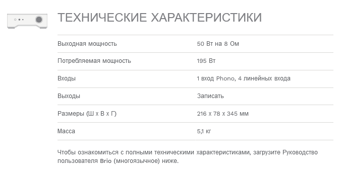 В IO используется тот же усилитель мощности и фонокорректор, что и в его старшем брате, получившем множество наград Brio.