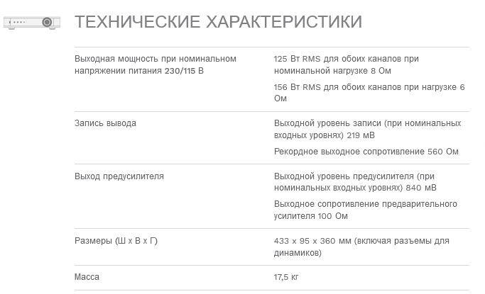156 Вт на канал при 6 Ом (125 Вт на канал при 8 Ом)