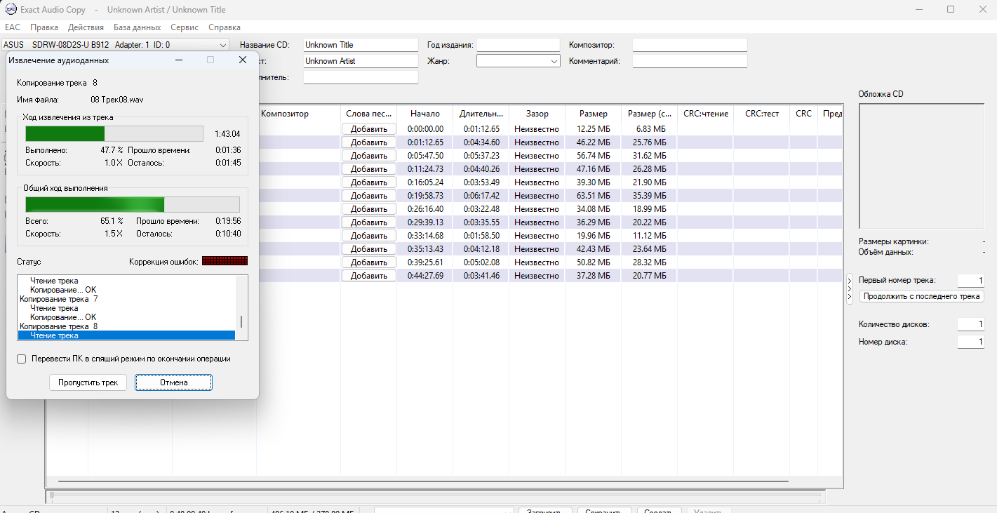 Главное достоинство помимо записи на низкой скорости — умеет самостоятельно переконвертировать форматы типа FLAC или APE в несжатый WAV для записи.