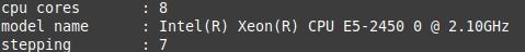 grep -E ‘model name|stepping|cores’ /proc/cpuinfo |sort -u