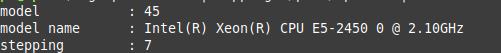 grep -E ‘model|stepping’ /proc/cpuinfo | sort -u
