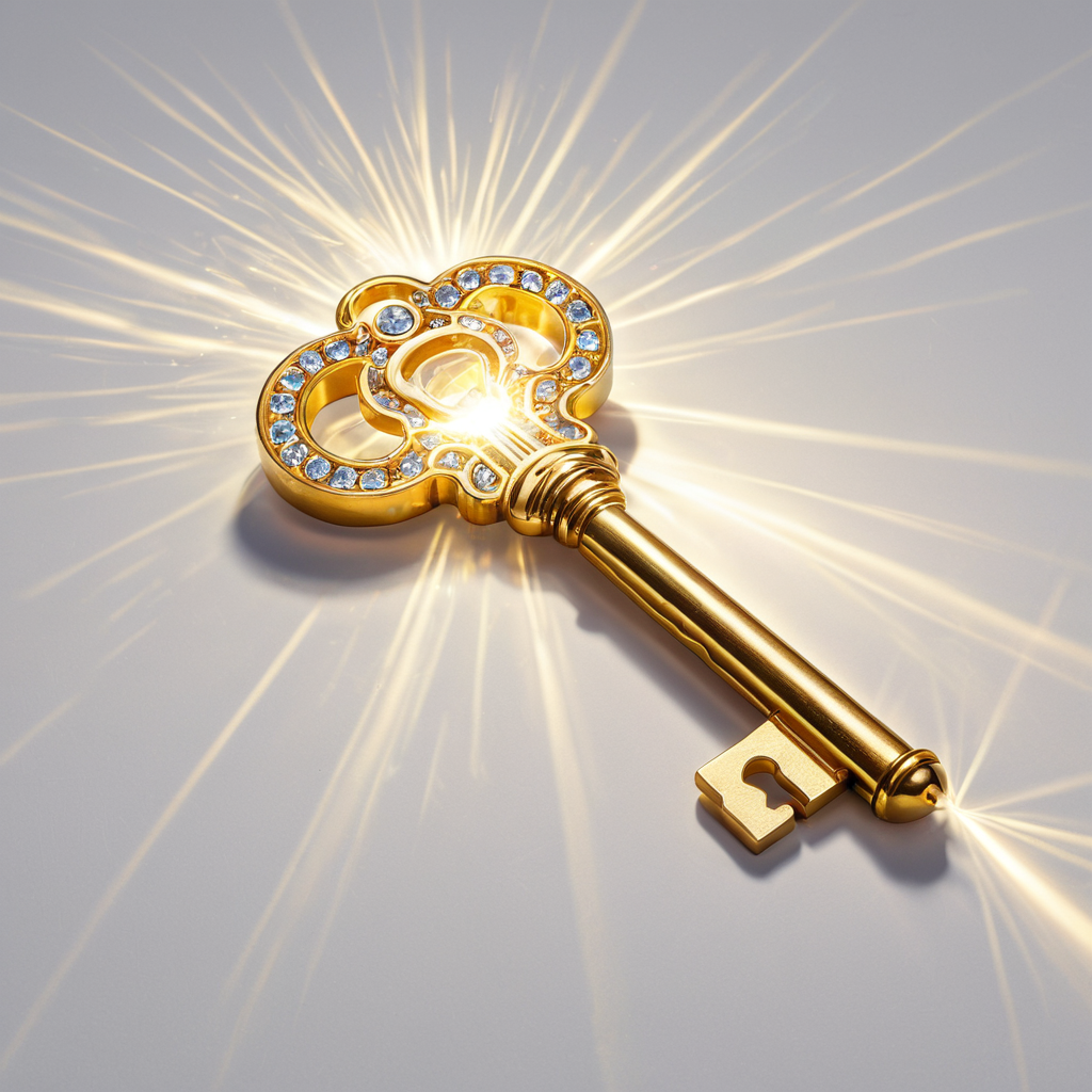 Быстрый пример: фотография золота и хрустального светящегося ключа, пульсирующего ярким светом