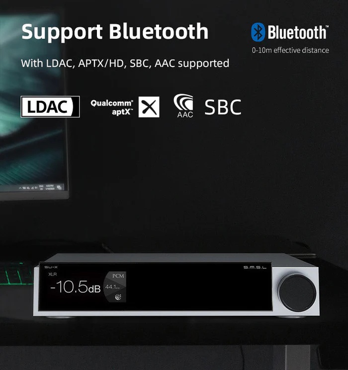 Познакомьтесь с SMSL SU-X MQA Audio DAC — новейшим флагманским настольным цифро-аналоговым преобразователем от SMSL для аудиофилов. Благодаря таким высококлассным компонентам, как два чипа ЦАП ESS ES9039MSPRO, USB-контроллер XMOS XU-316 и чип Qualcomm Bluetooth 5.1, он обеспечивает непревзойденное качество звука для аудиофилов, ценящих мельчайшие детали.
