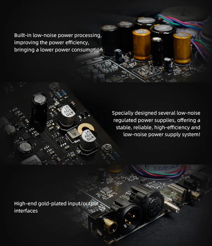 Этот ЦАП обладает самыми новейшими технологиями и флагманскими чипами — будь-то транспорт или преобразователь, которых в устройстве два восьмиканальных топовых ESS Sabre ES9039MS PRO! Два трансформатора — для аналоговой и цифровой части, модуль от джиттера, балансная схема, 21 аудиофильский ОУ OPA6112 и тд.